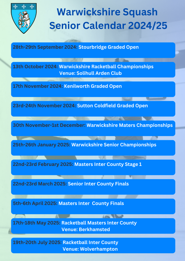 Full details for the senior calendar for 2025/26 will be available shortly. Please see the England Squash calendar HERE.